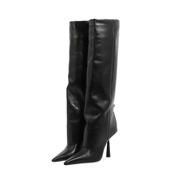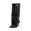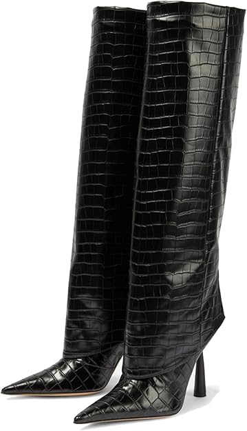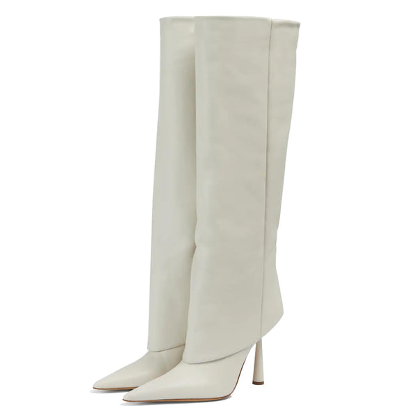 Vertundy Women's Fold Over Boots - Pointed Toe Stiletto Heel Slip On Knee High Boot Fashion Sexy Dress Boot