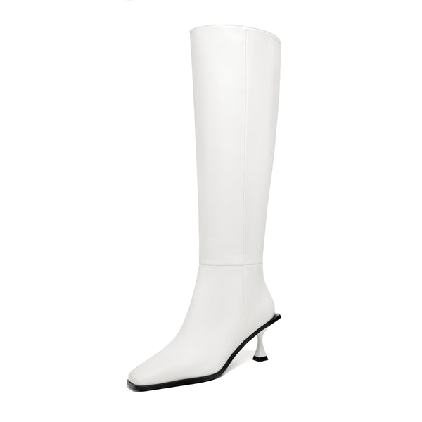 Vertundy Womens Kitten Heel Boots Square Toe Low Heel Leather Knee Hig