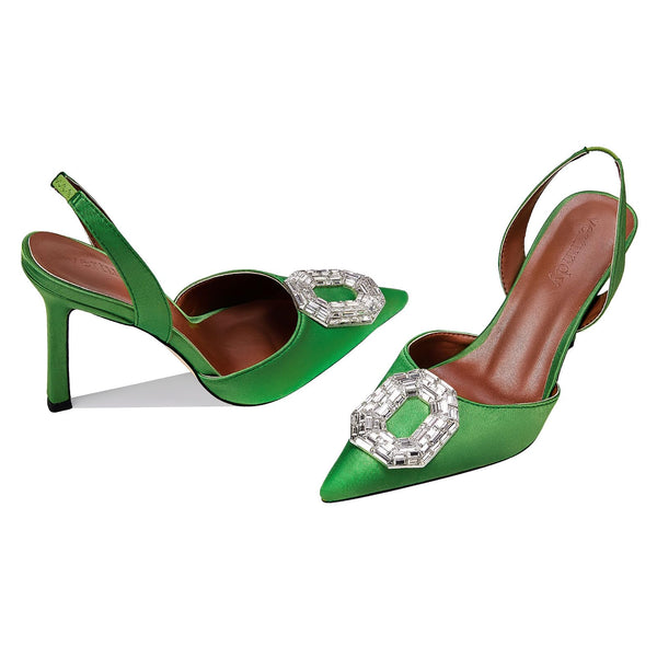 Vertundy Women's Rhinestone Slingback Pumps Pointed Toe Satin Crystal Stiletto High Heels Sandals Party Wedding Bride Pump Dress Shoes