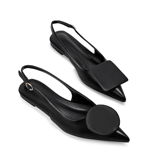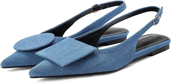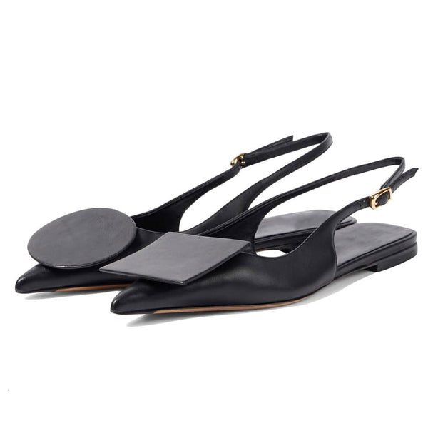 Vertundy Women's Slingback Flats Pointed Toe Flats for Women Low Heel Pumps Ankle Strap Sandals Circle Square Decorative Fashion Design Shoes